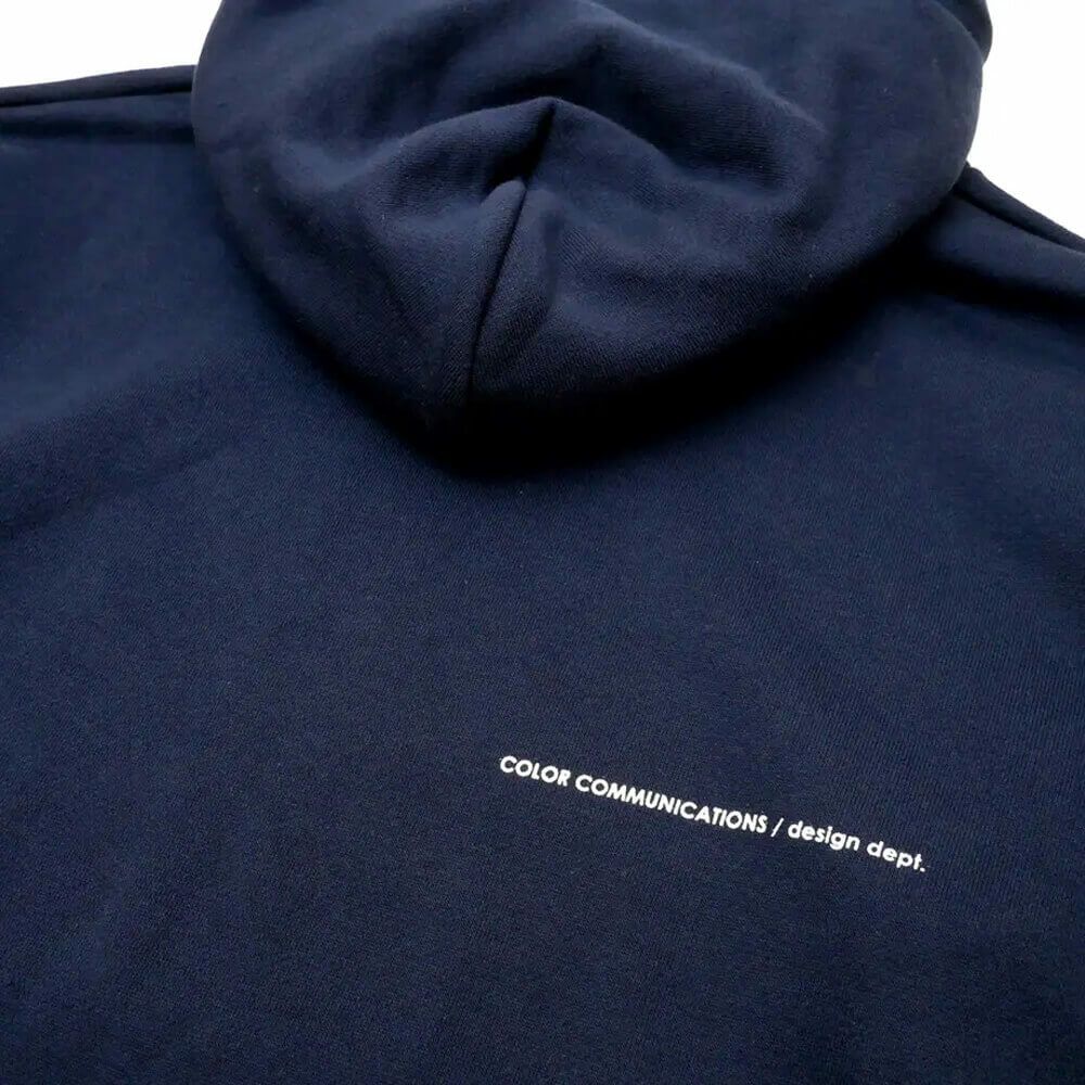 5. COLOR COMMUNICATIONS HOOD カラーコミュニケーションズ パーカー DRIP EMB NAVY 刺繍ロゴ スケートボード スケボー
